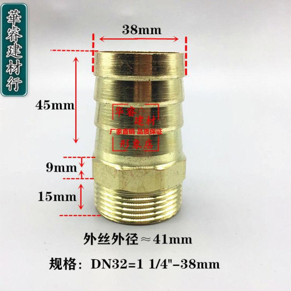 • Розміри: діаметр під шланг 38 мм, різьба 1 1/4" (зовнішня)